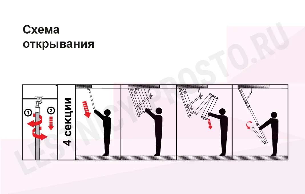 Максимально утеплённая чердачная лестница из массива сосны. Складная, четырехсекционная.