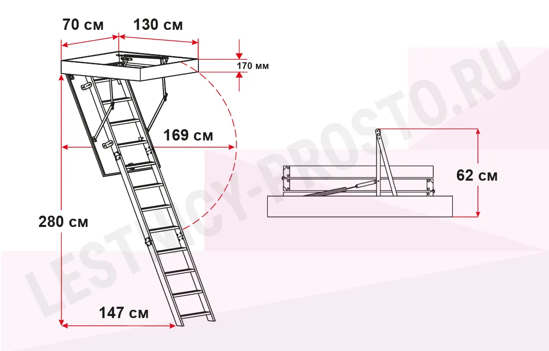 Чердачная лестница с люком OMAN POLAR 70х130 см, h-280 см