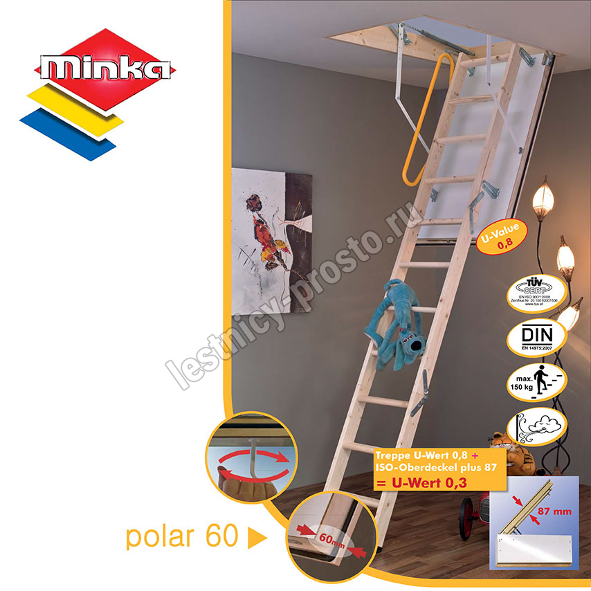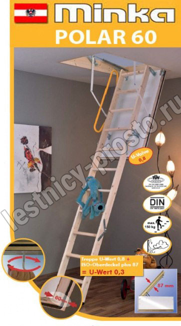 Чердачная складная лестница MINKA POLAR 60 70×85 см, h-255 см
