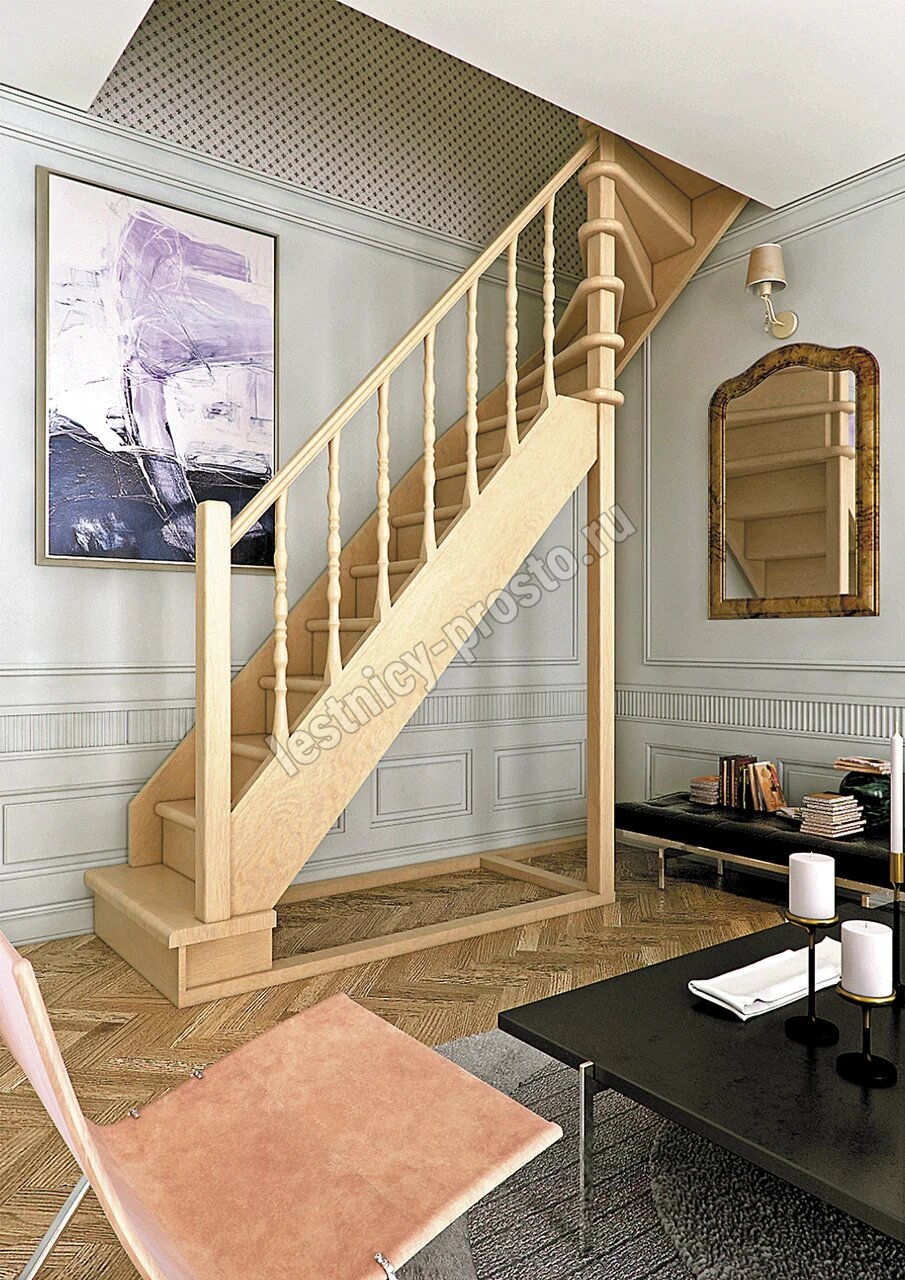 Деревянная межэтажная лестница ЛЕС-215, Сосна