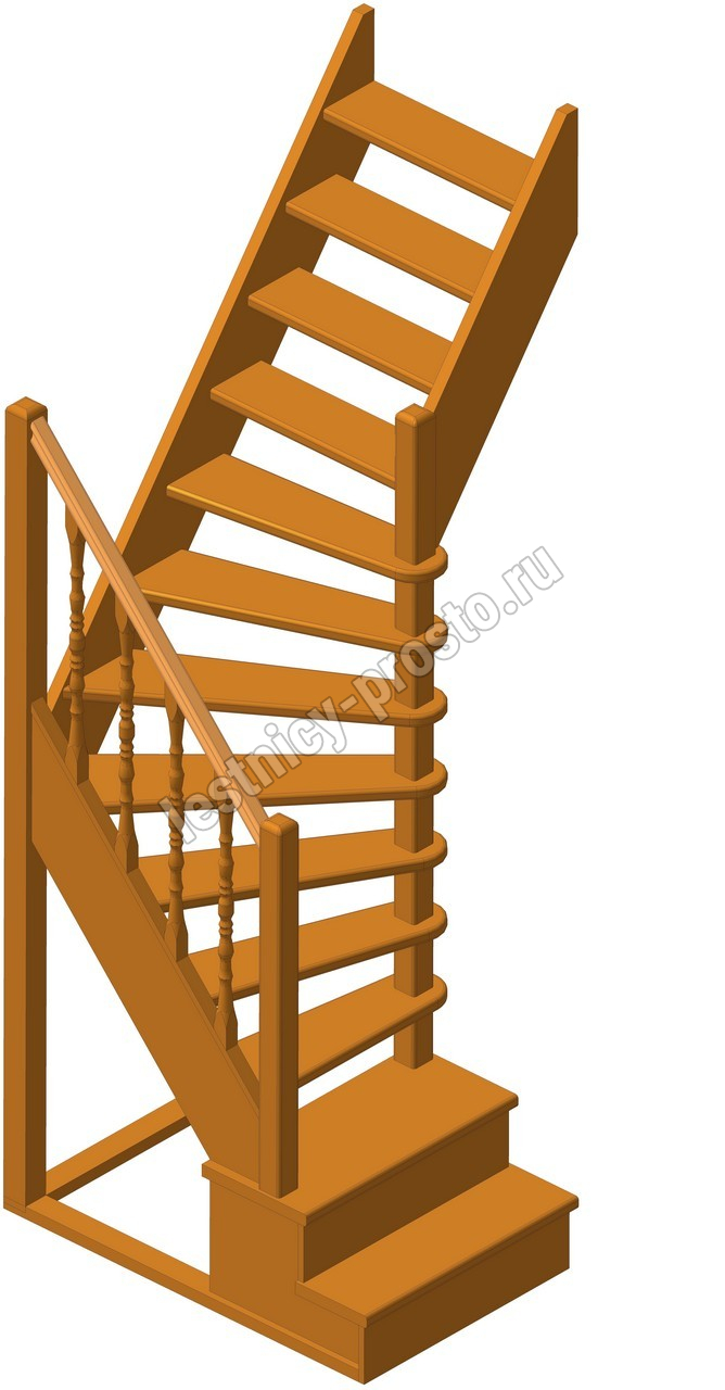 Деревянная межэтажная лестница ЛЕС-91 2925-3150 проем 1390-780, Сосна