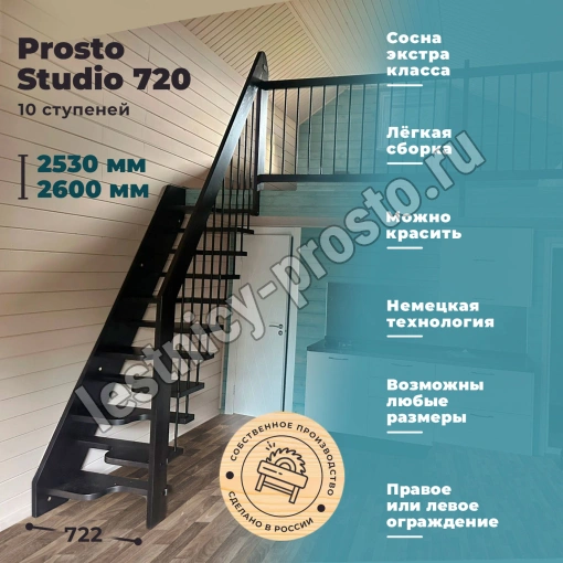 Консольная деревянная лестница Prosto Studio 720 гусиный шаг, h253-260 см (10 ступеней) из сосны