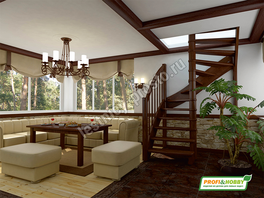Ступени и поручень лестницы изготовлены из бука, остальные элементы из сосны.
