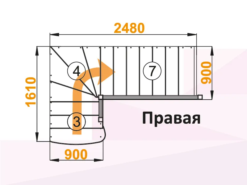 Лестница К-001М/2 с поворотом направо