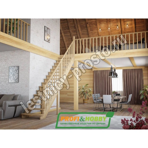 Базовый комплект включает в себя деревянные элементы лестницы и ограждения без какого-либо покрытия.