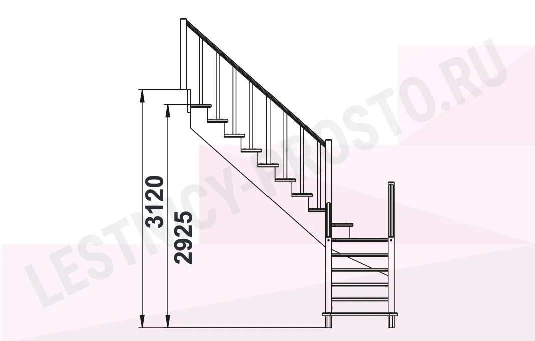 Базовый комплект включает в себя деревянные элементы лестницы и ограждения без какого-либо покрытия.