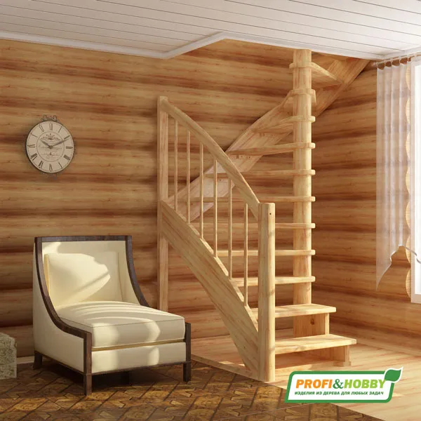 В производстве лестницы ЛС-05м под покраску используется сосна с небольшими изменениями цвета, что практически не влияет на ее механические свойства и почти незаметно при покраске в темные цвета. Базовый комплект включает в себя деревянные элементы лестницы и ограждения без какого-либо покрытия.