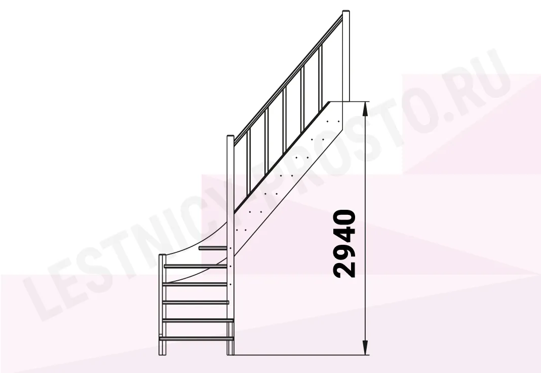 Базовый комплект включает в себя деревянные элементы лестницы и ограждения без какого-либо покрытия.