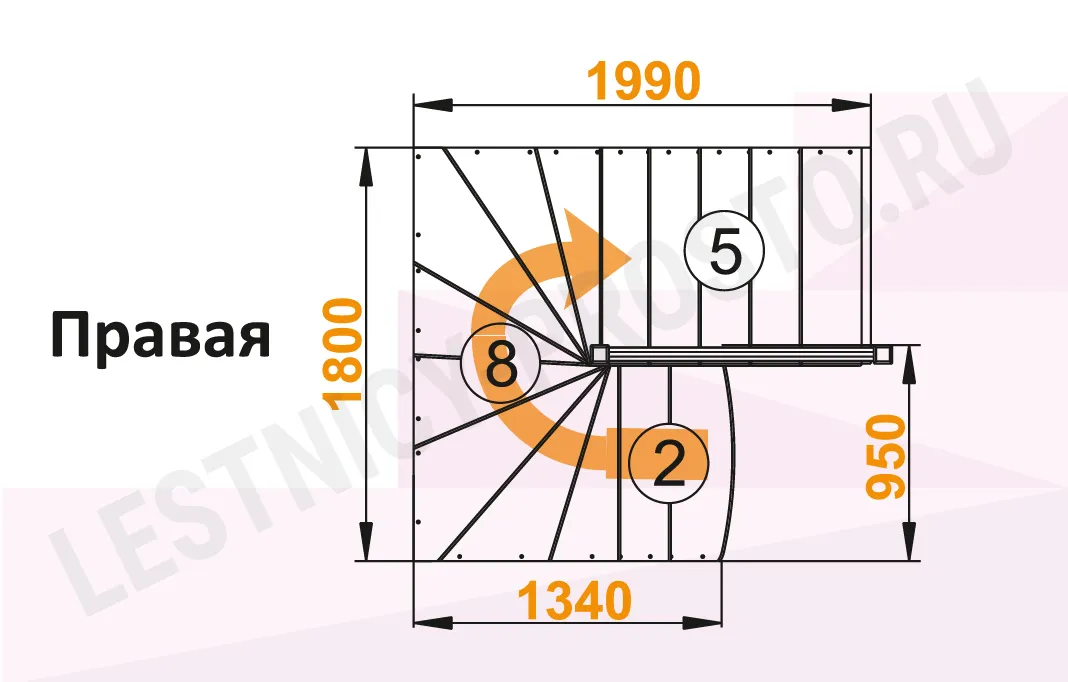 Схема лестницы К-003М/4 с поворотом налево