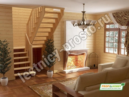 Материал: ясень (ступени и поручень), сосна (косоуры, столбы, балясины)