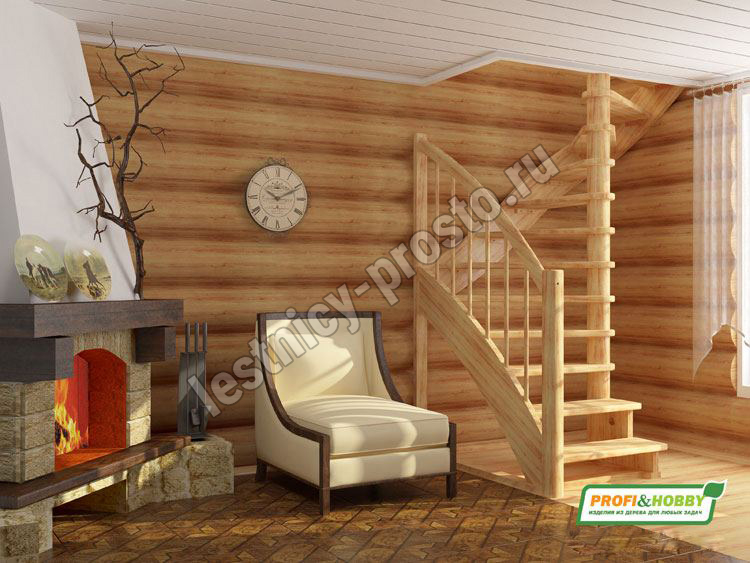 Материал: ясень (ступени и поручень), сосна (тетивы, столбы, балясины)