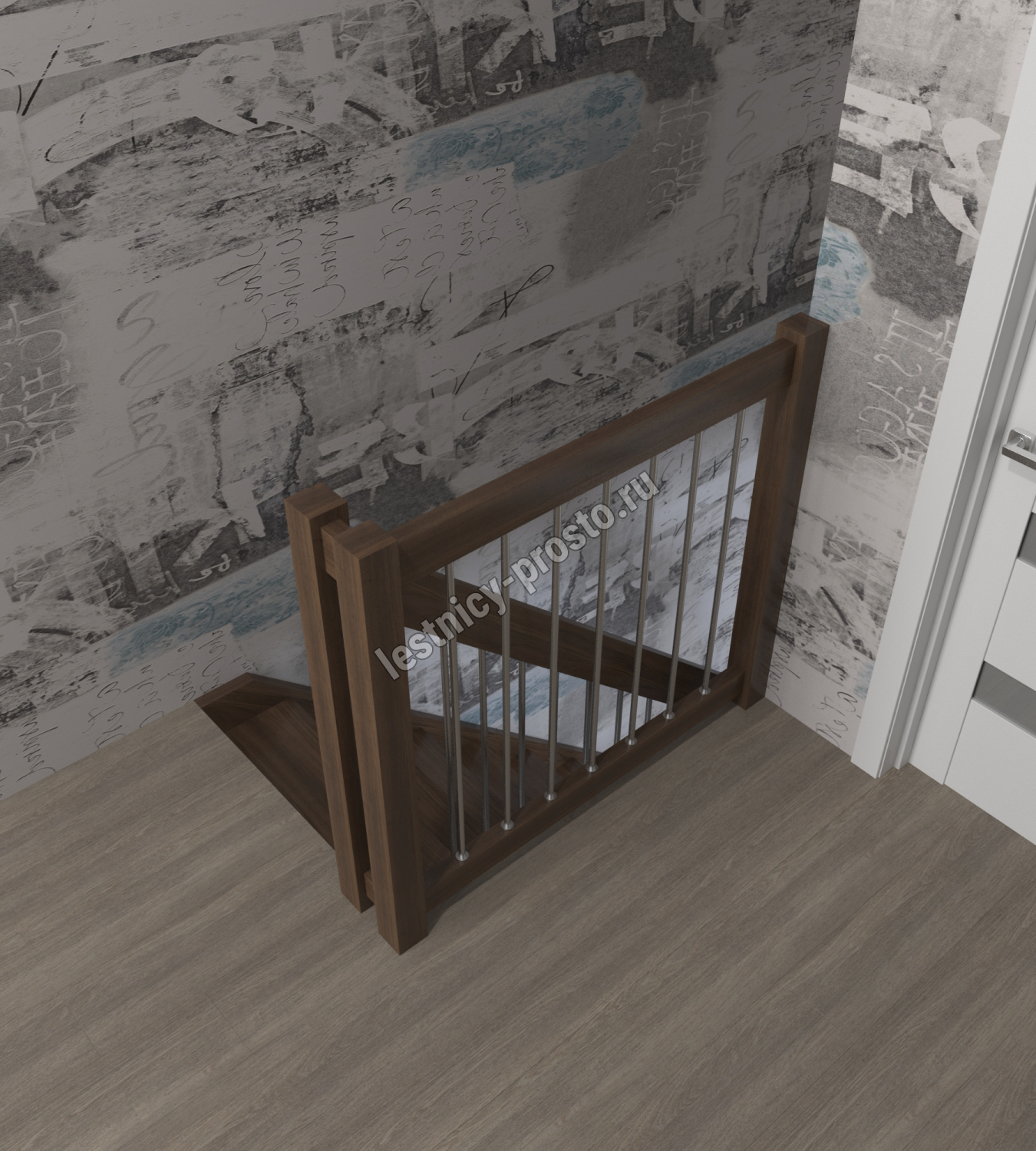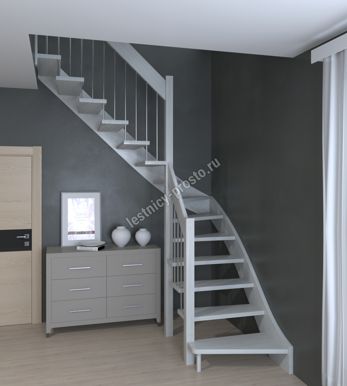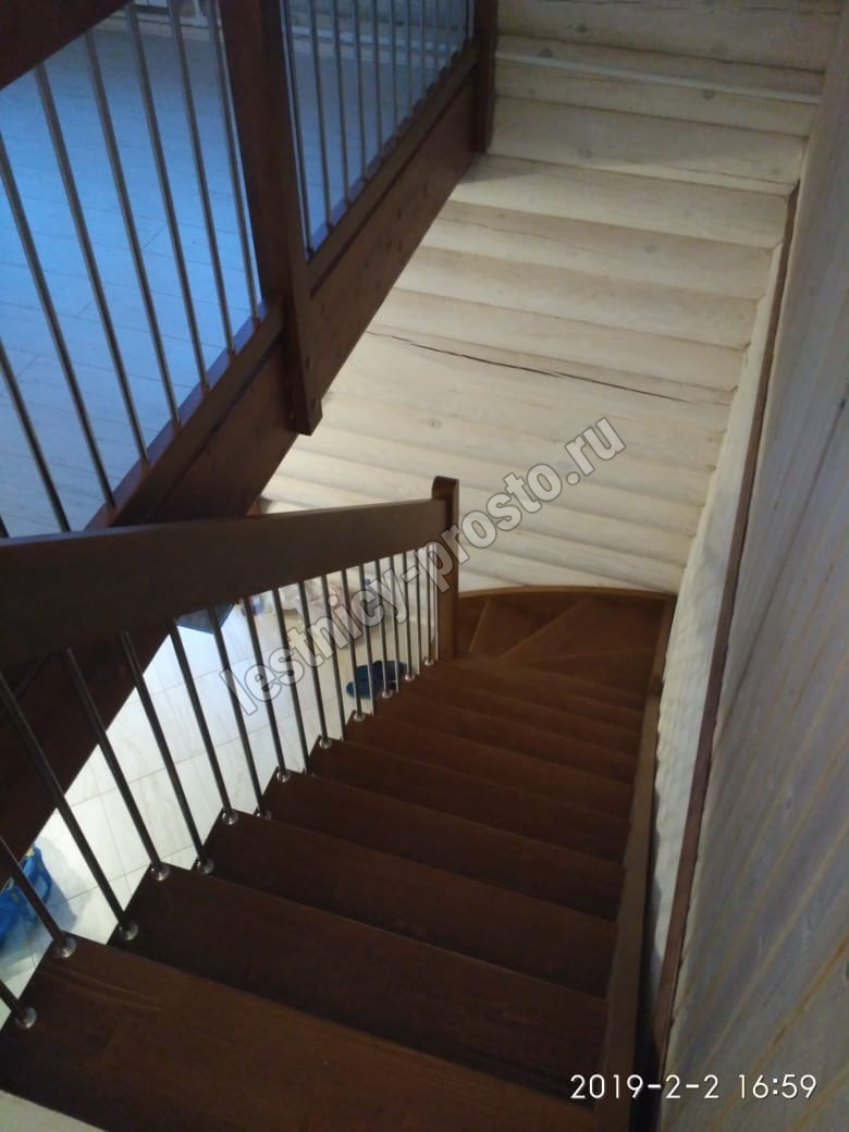 Лестница Prosto Console г-образная забежная бук, h225 см (9 ступеней)