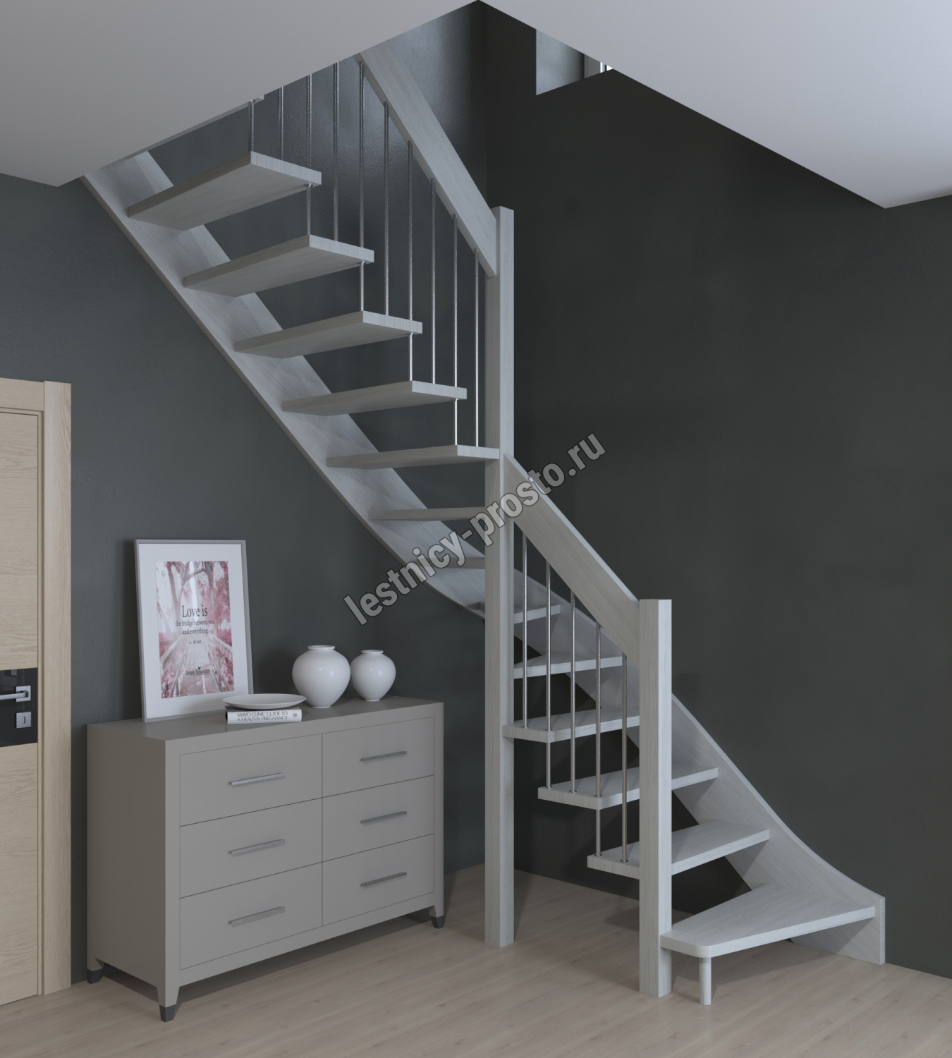 Лестница Prosto Console г-образная забежная бук, h270 см (11 ступеней)