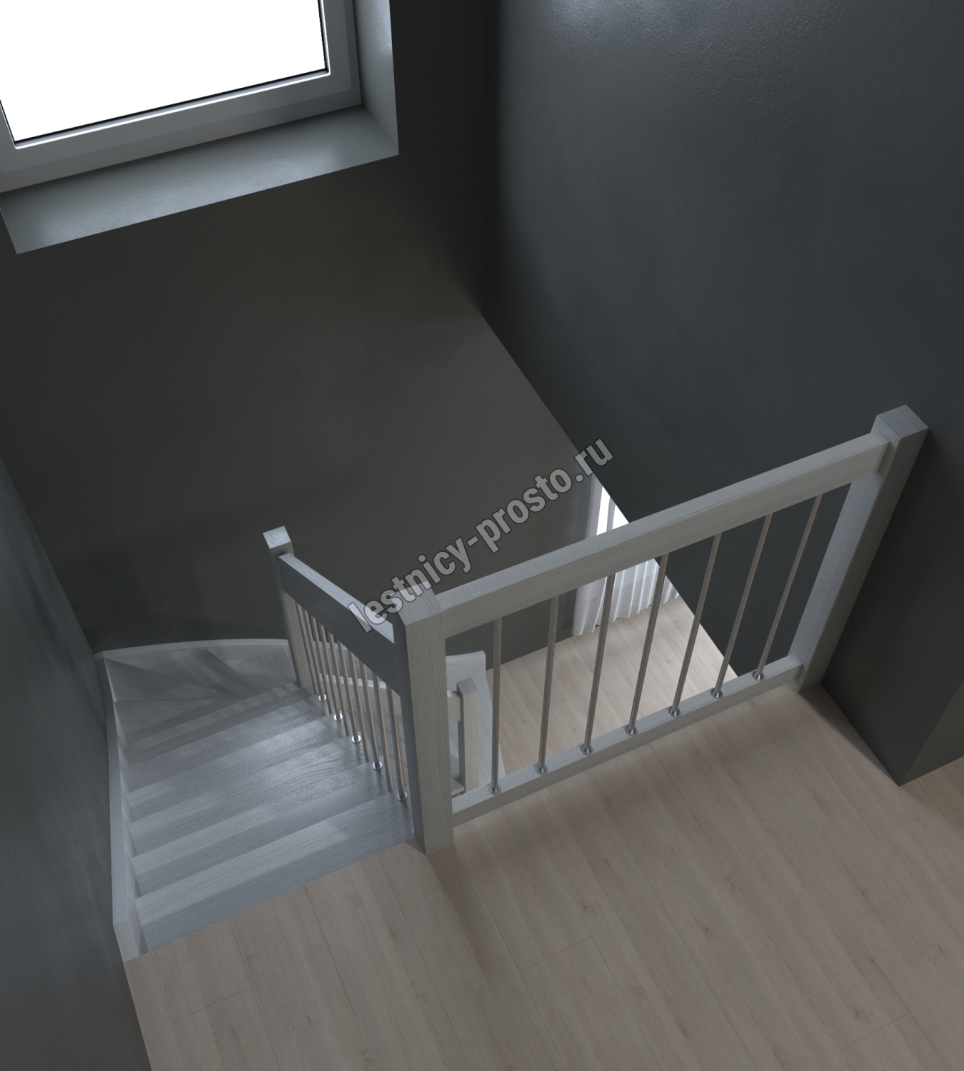 Лестница Prosto Console г-образная забежная дуб, h270 см (11 ступеней)