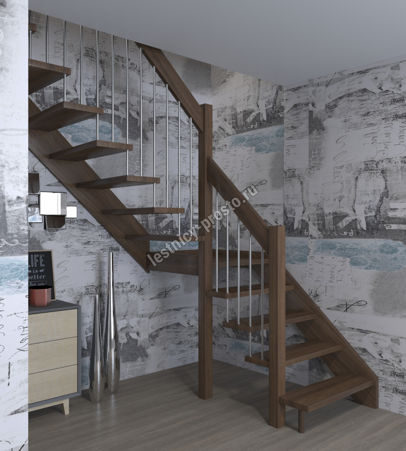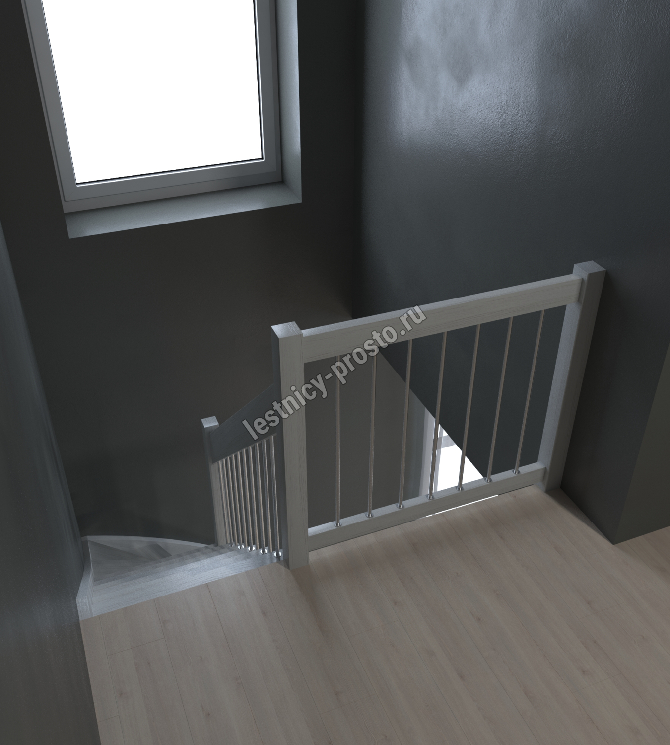 Лестница Prosto Console г-образная забежная сосна, h247.5 см (10 ступеней)