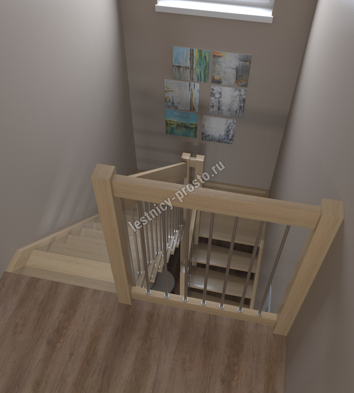 Лестница Prosto Console п-образная забежная, ясень h247.5 см (10 ступеней)