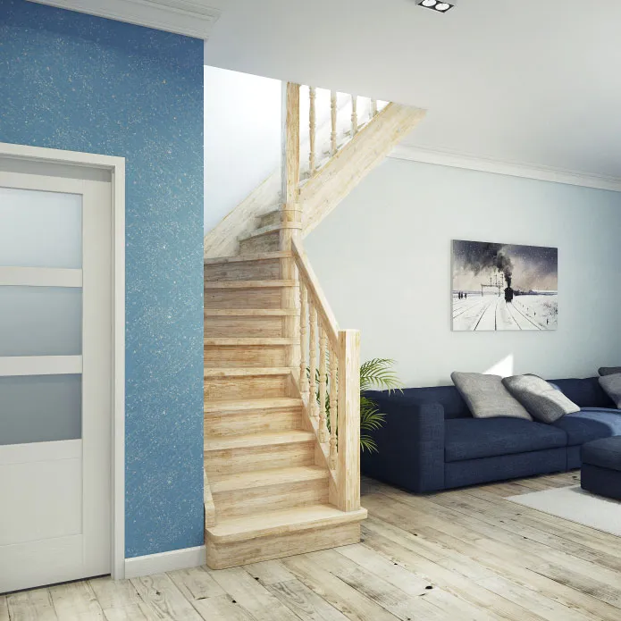 Лестница Универсал изготавливается как с поворотом направо, так и с поворотом налево. Под заказ возможно изготовление лестницы Универсал с высотами этажа: 2300 мм, 2500, мм, 2700 мм, 2900 мм, 3100 мм. В стандартной комплектации лестница поставляется в натуральном цвете, то есть без окрашивания. Первая ступень может быть пригласительной (со скругленными краями или прямой). Базовые ограждения можно заменить на ограждения любого другого вида.