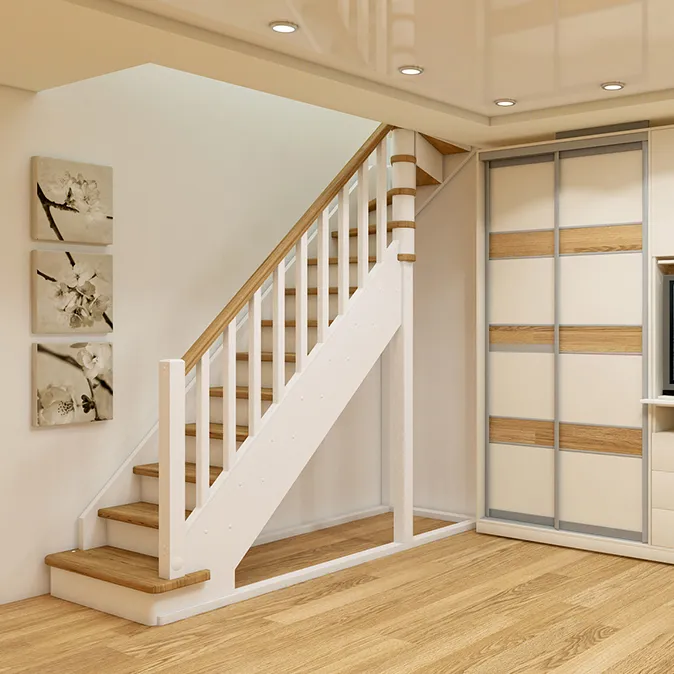 Все деревянные элементы изготовлены из древесины «экстра» без сучков. Лестница отшлифована и подготовлена под покраску, которая не включена в стоимость.