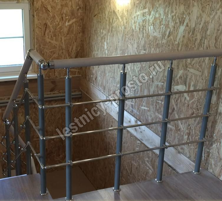 Комплект ограждений для П-образной лестницы PROSTO MONO из 8 ступеней.
