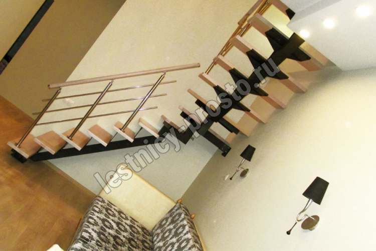 Комплект ограждений для П-образной лестницы PROSTO MONO из 9 ступеней.