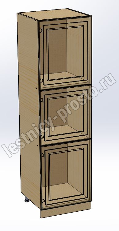 Шкаф высокий (пенал) изготовлен из 100% массива дерева, без шпона и без МДФ/ДСП.