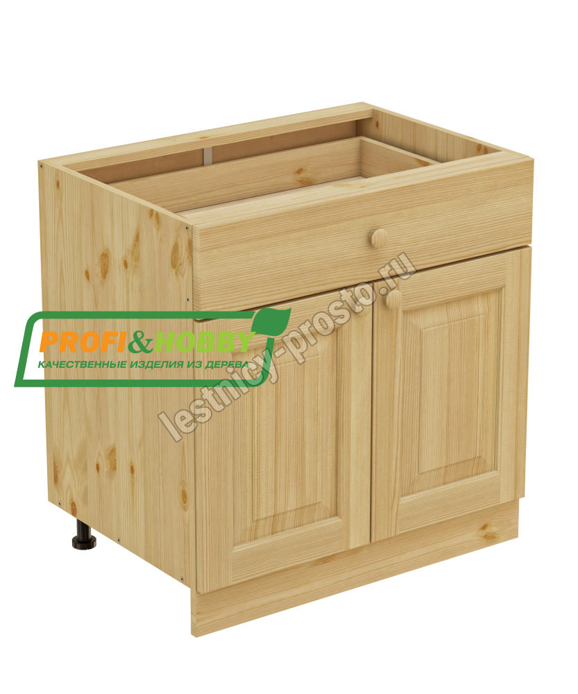 Тумба 2 двери, 1 ящик 800 х 560 х 720 сосна, бесцветный акриловый лак