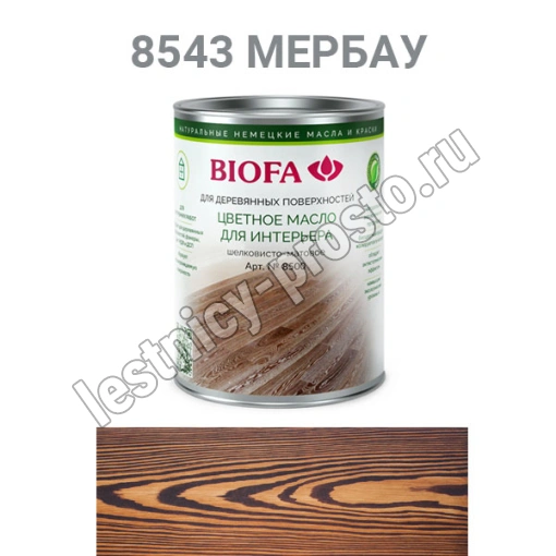 BIOFA Color-Oil For Indoors - не содержащий растворителей продукт, состоящий из высококачественных биомасел и восков. Используется для придания цветового оттенка поверхности древесины и в качестве износостойкого покрытия для мебели, лестниц и всех видов деревянных напольных покрытий, пробки.