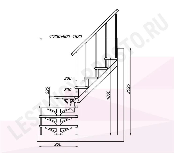 Высота лестницы 1800 - 2025 мм