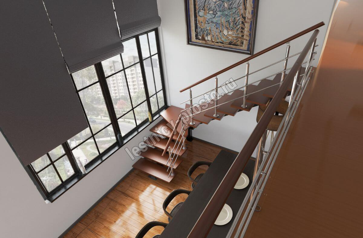 Лестница PROSTO MONO Г-образная h270 см, ступени лиственница