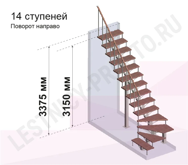 Высота лестницы 3150 - 3375 мм