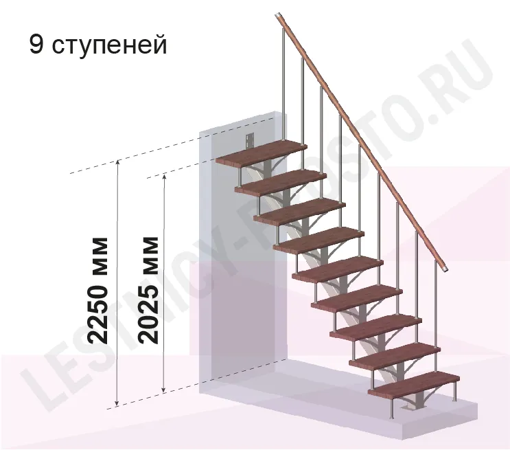 Лестница PROSTO MONO прямая, h225 см, ступени бук