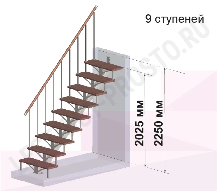 Высота лестницы 2025 - 2250 мм