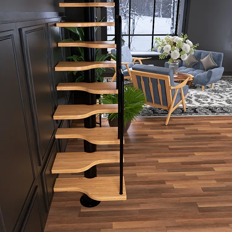 Поворот на 90° реализован посредством поворотных ступеней, высота поворота определяется параметрами вашего помещения и размерами проёма.
