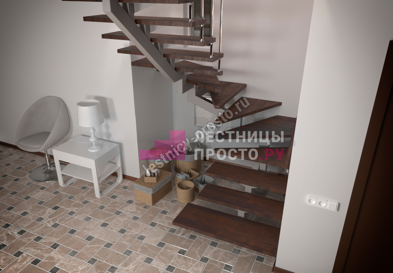 Металлический каркас лестницы PROSTO MONO STEP CLASSIC п-образная забежная