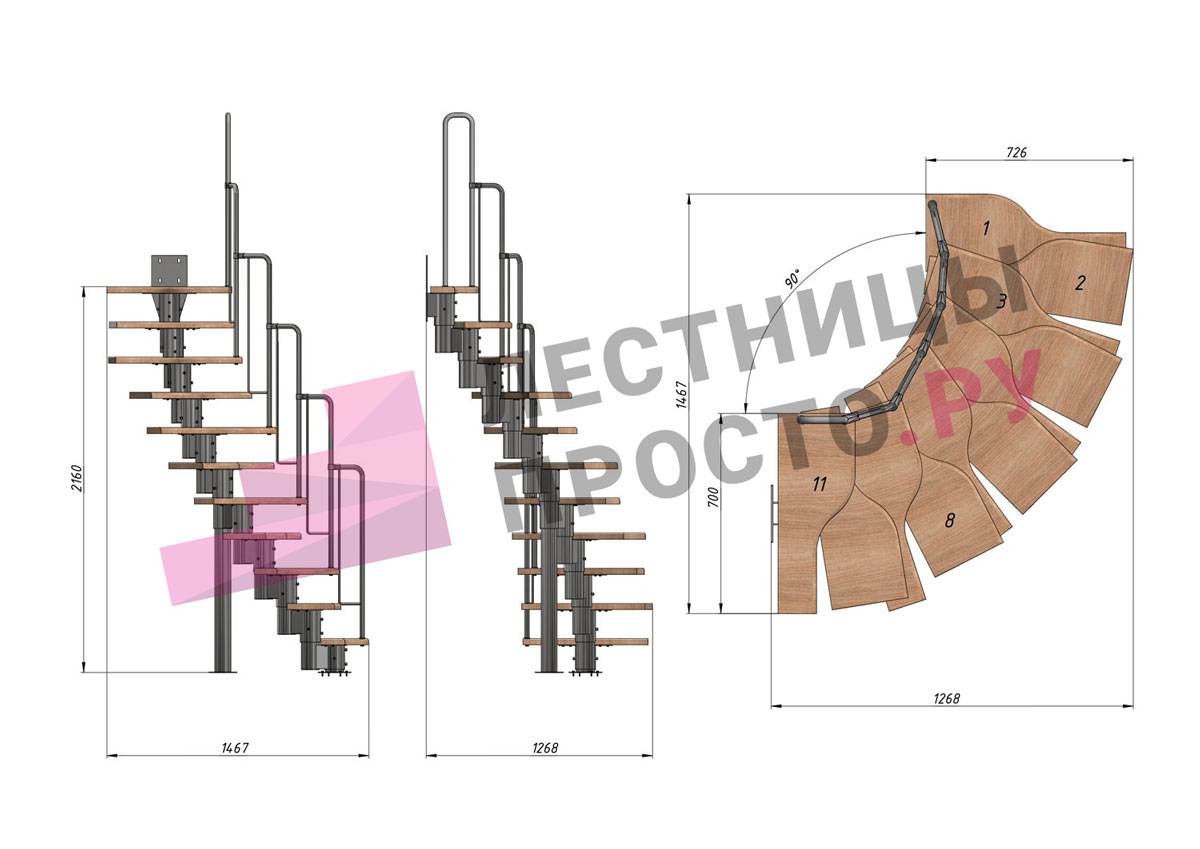 Высота лестницы 1980 - 2880 (11 ступеней) мм