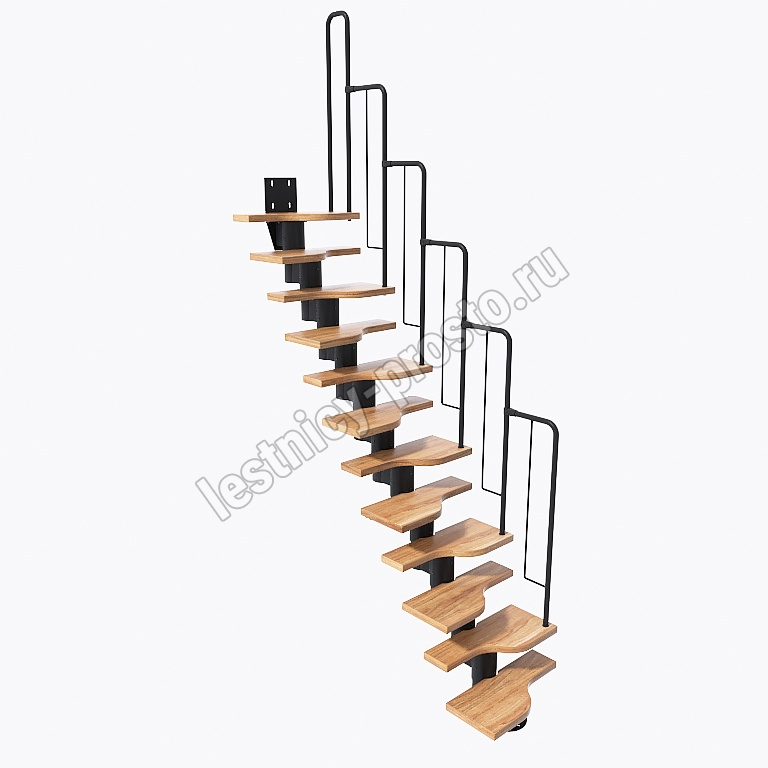 Лестница Prosto Urban Black гусиный шаг 700 мм, h234-336 см (13 ступеней), ясень