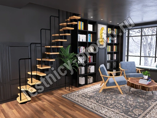 Лестница Prosto Urban Black гусиный шаг 700 мм, h216-312 см (12 ступеней), берёза мультиплекс