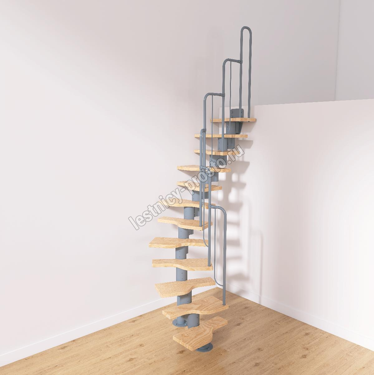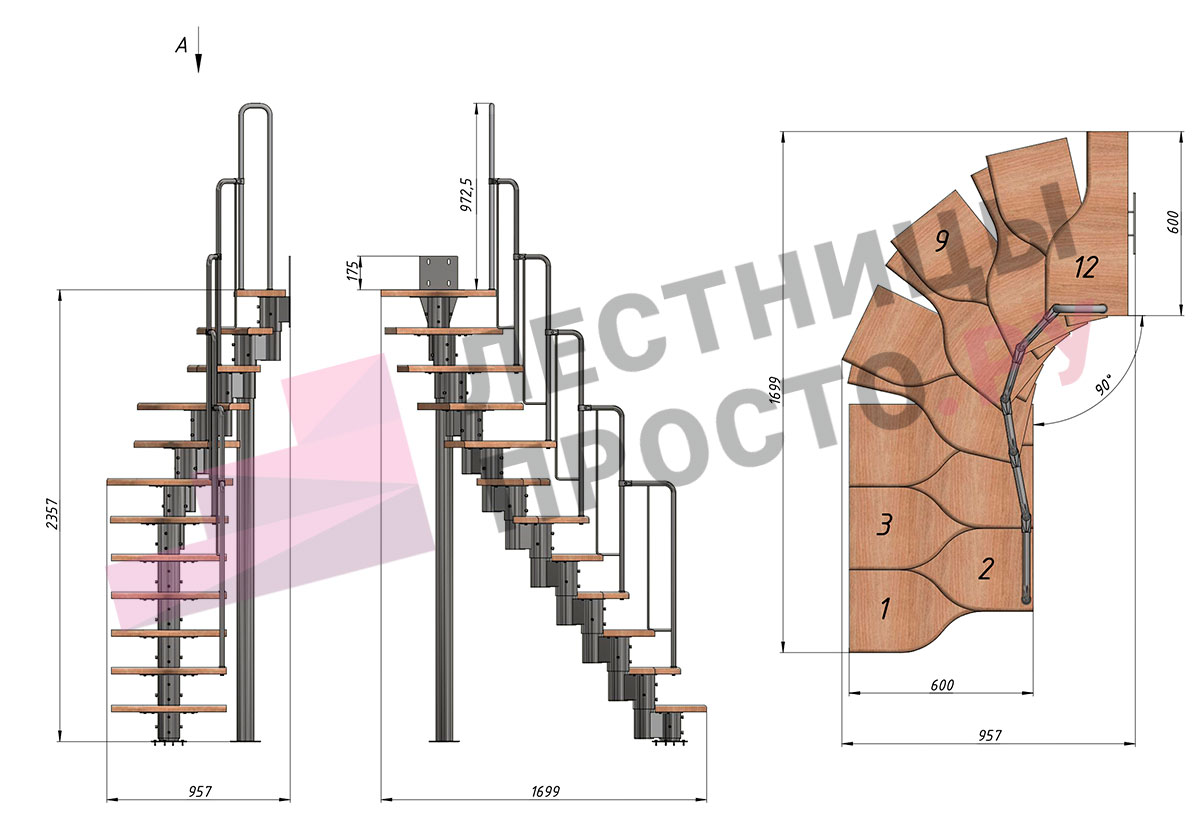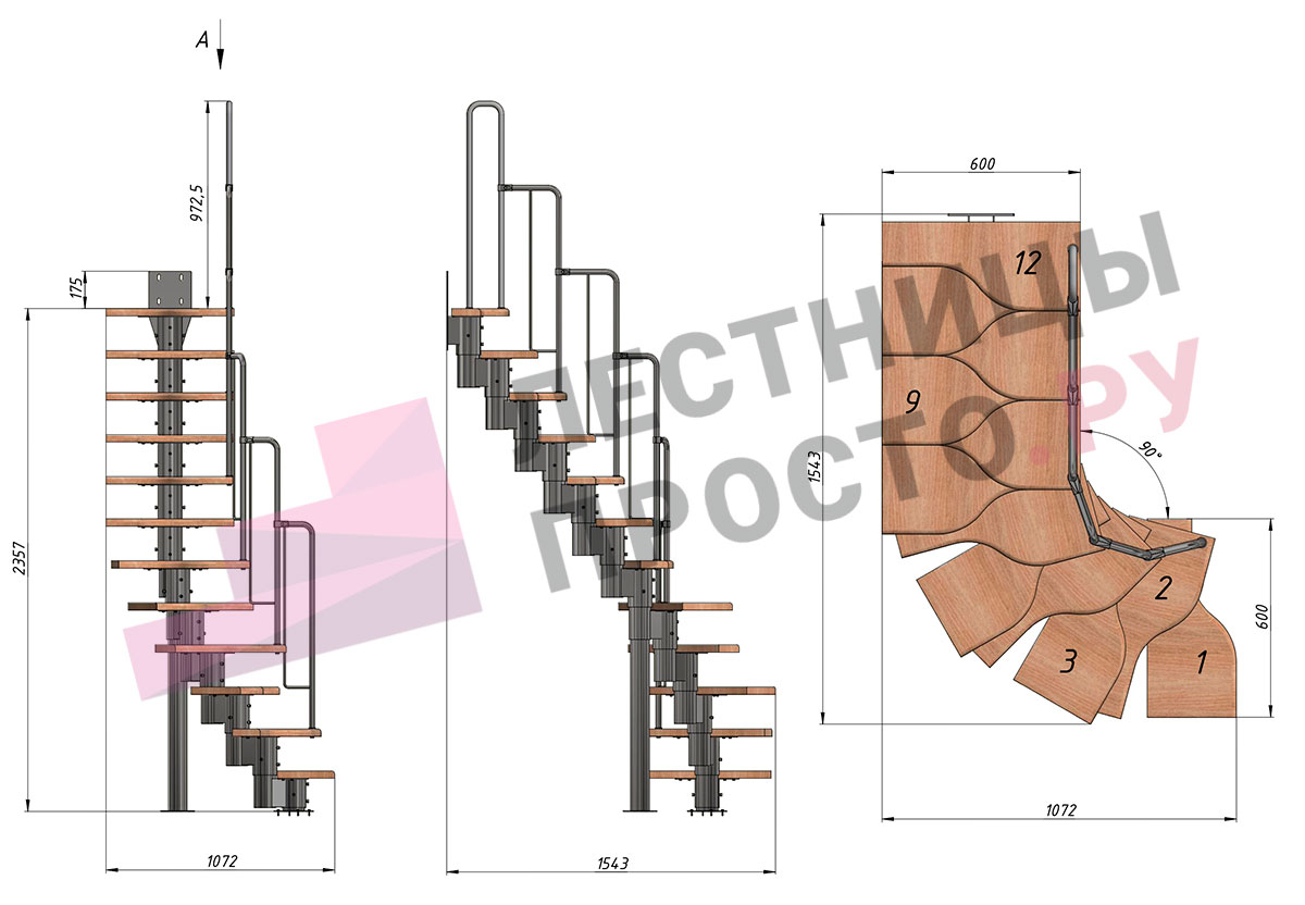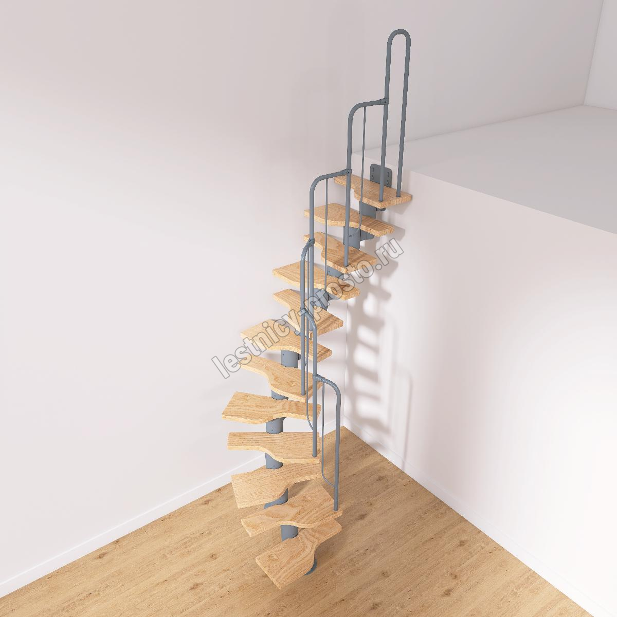 Лестница Prosto Urban Grey г-образная гусиный шаг 600 мм, h216-312 см (12 ступеней)