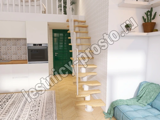 Лестница Prosto Urban White гусиный шаг 600 мм, h198-288 см (11 ступеней), бук
