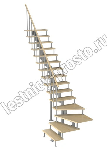Модульная лестница Фаворит 225 3375-3525, Серый, Бук, Нержавеющая сталь