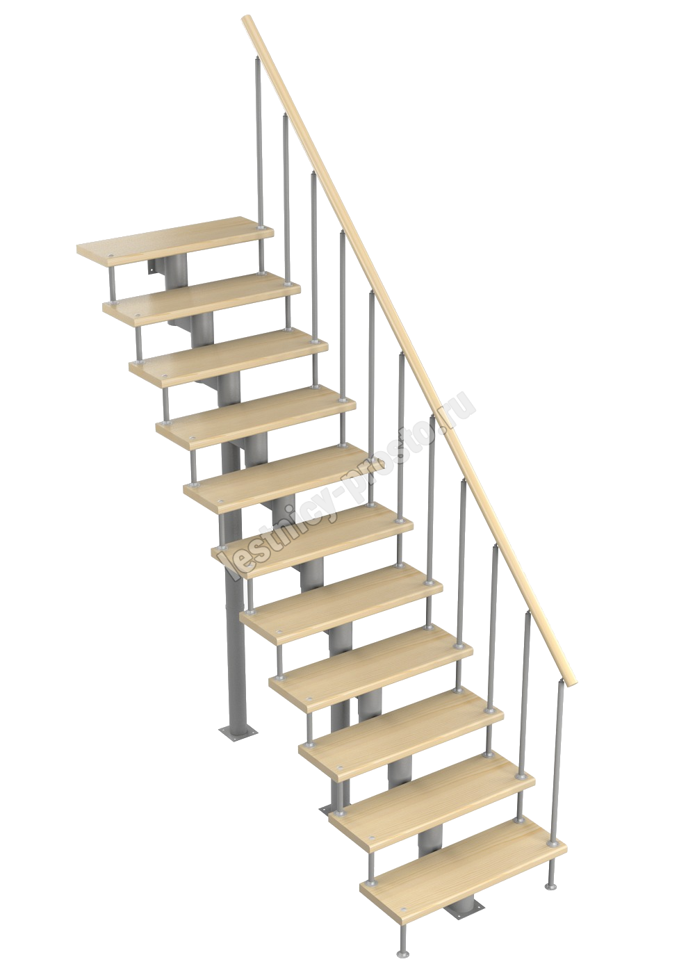 Модульная лестница Стандарт 2475-2585, Серый, Сосна, Нержавеющая сталь
