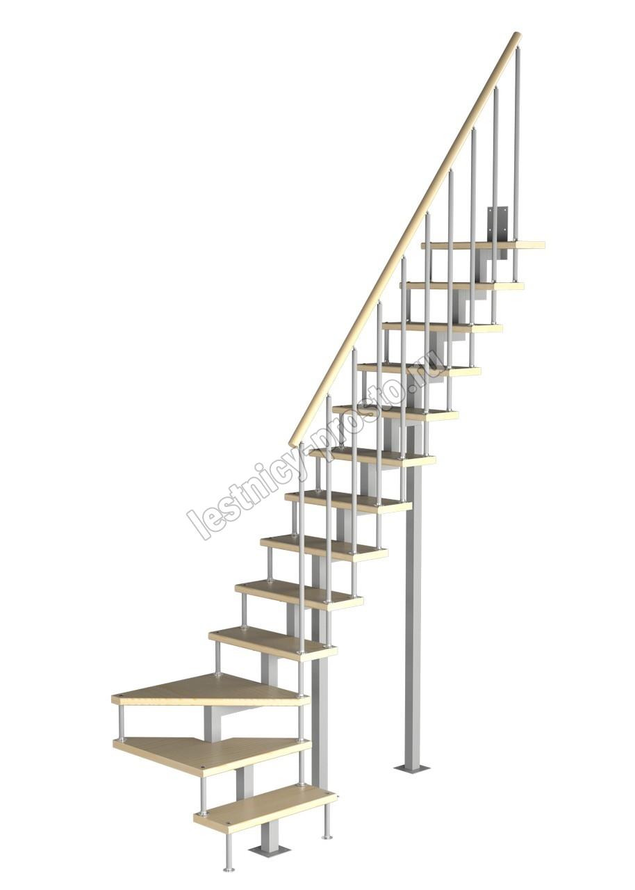 Модульная малогабаритная лестница Компакт 2925-3150, Серый, Сосна, Крашеная