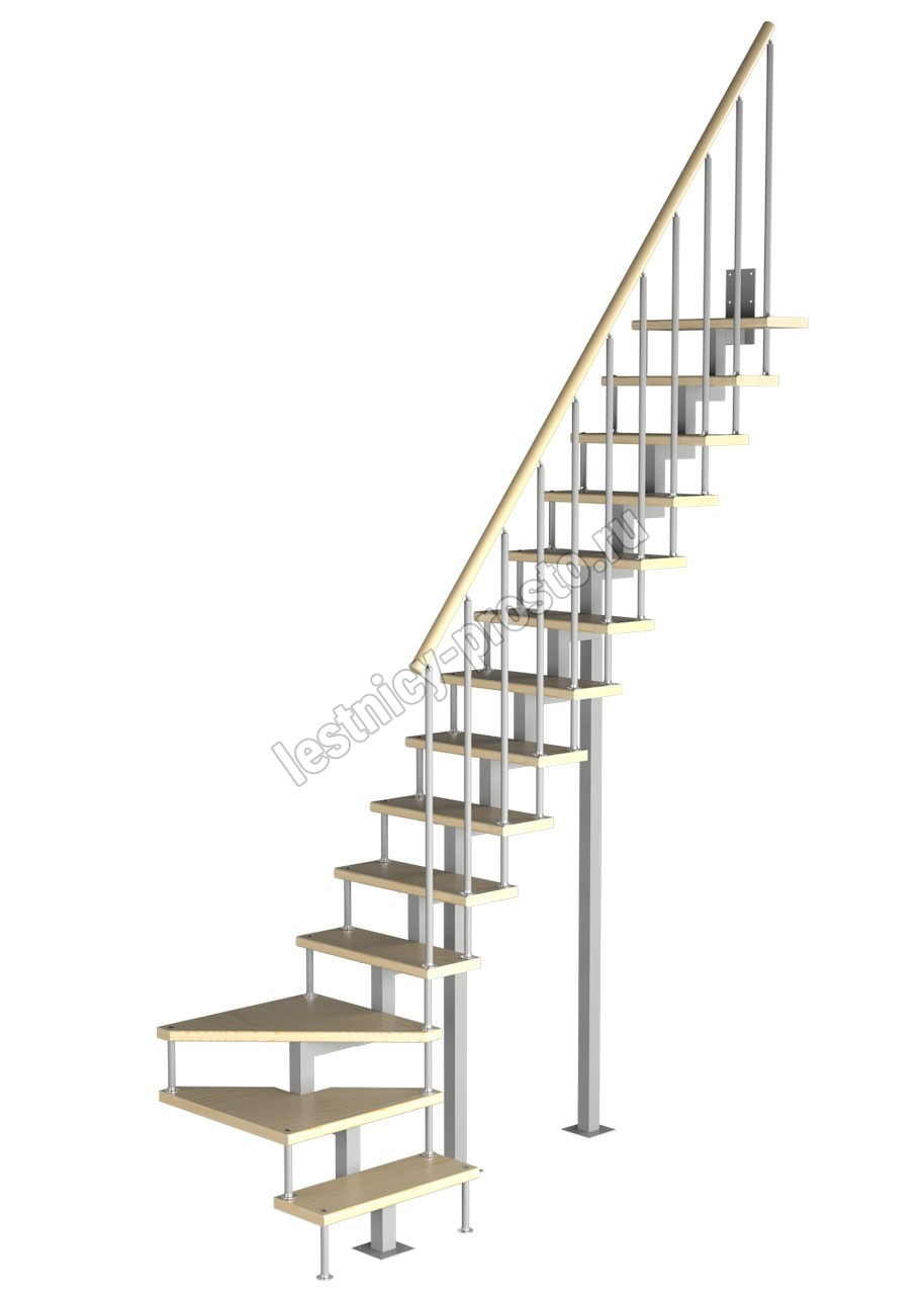 Модульная малогабаритная лестница Компакт 3150-3375, Серый, Лиственница, Нержавеющая сталь