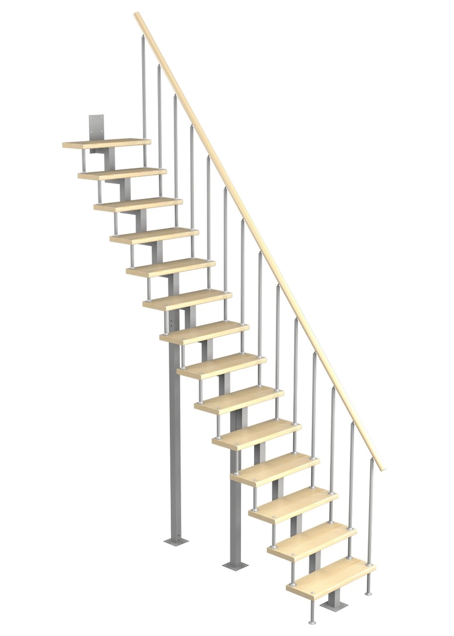 Модульная малогабаритная лестница Линия 3150-3375, Серый, Бук, Нержавеющая сталь