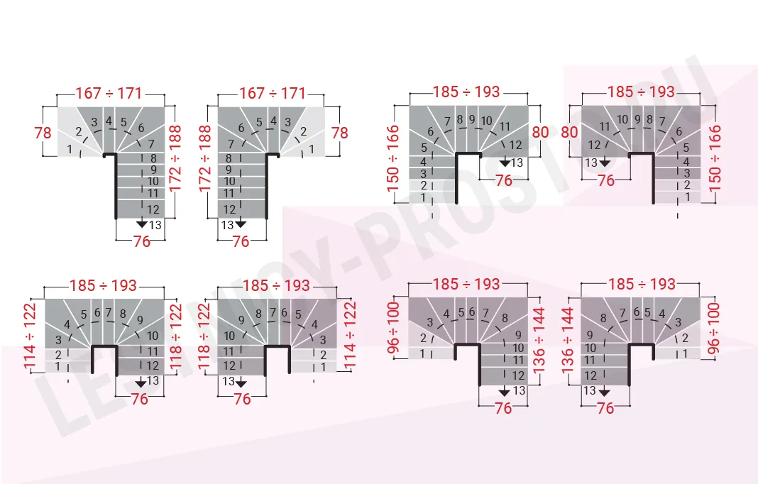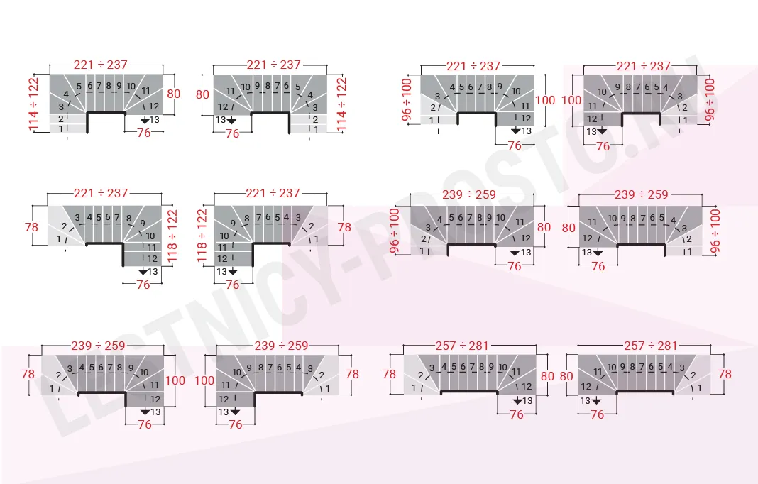 Ширина ступени регулируется при монтаже в пределах 180 - 220 мм