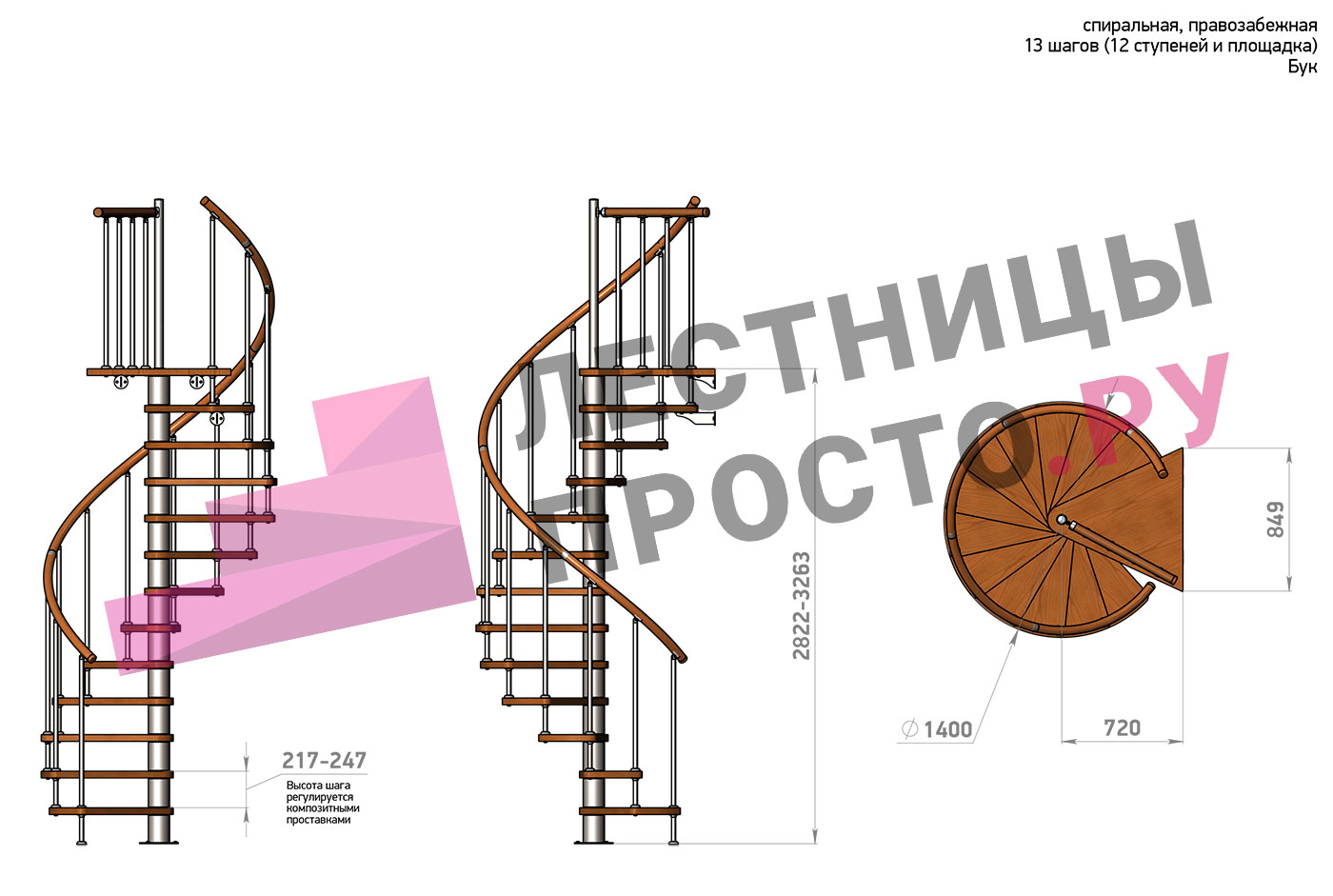 Винтовая лестница Prosto Spiral Black D140см, h282.2-326,3 см, бук