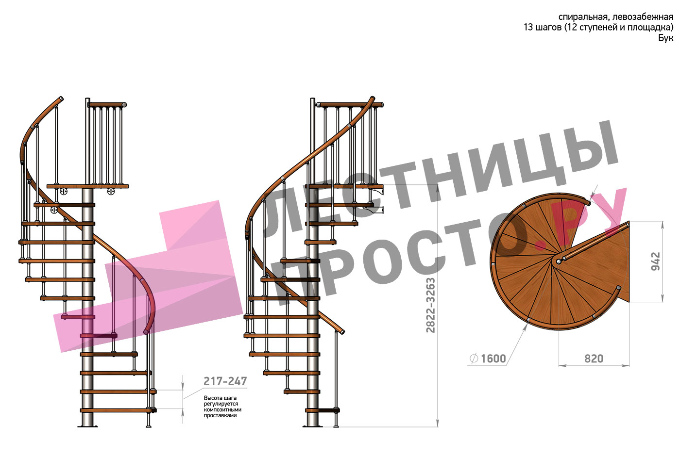 Винтовая лестница Prosto Spiral Black D160см, h282.2-326,3 см, бук