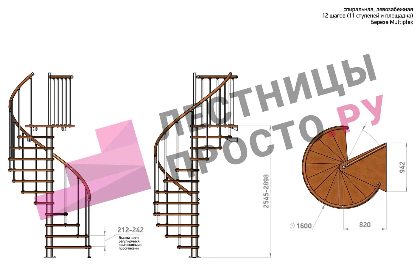 Высота шага 212 - 242 мм