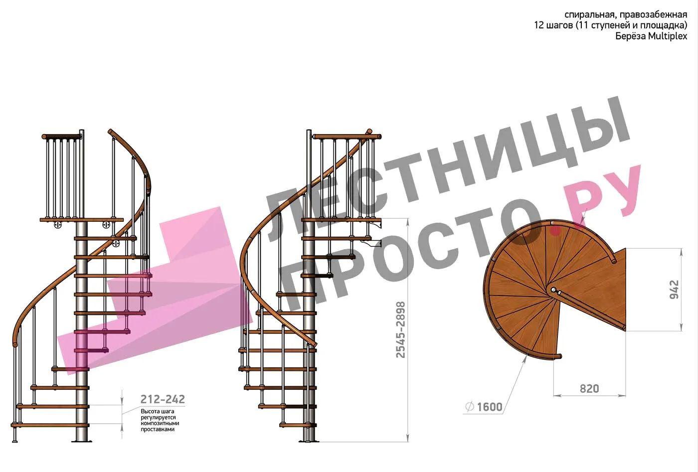 Винтовая лестница Prosto Spiral White D160см, h275.7-313.9 см