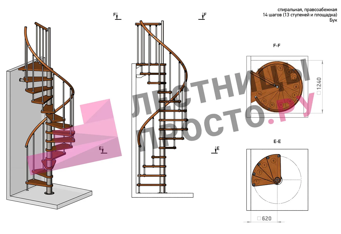 | Винтовая лестница Prosto Spiral White D120см, h282.2-326,3 см, бук |